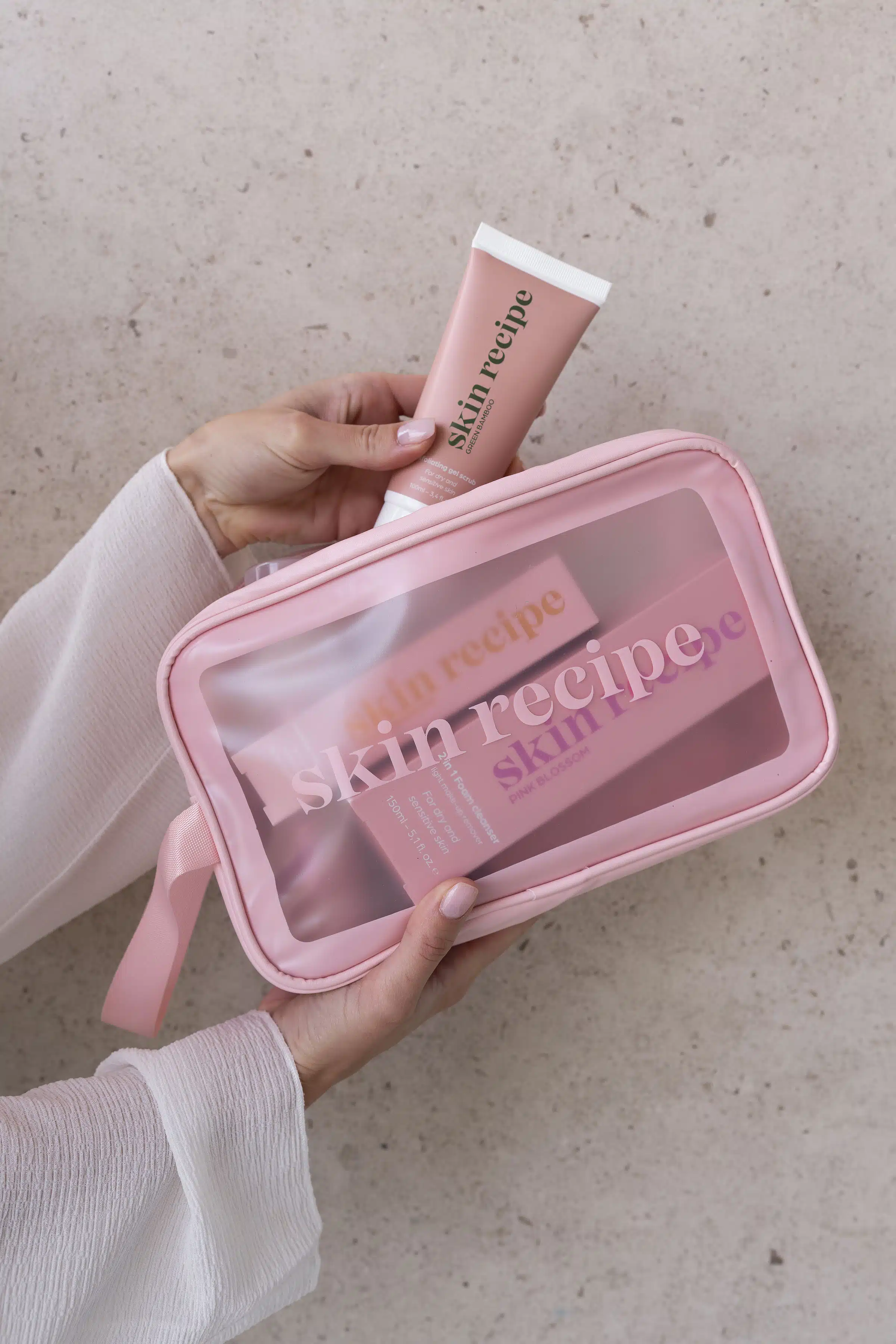 Deze prachtige beauty bag past perfect bij het design van de skin care lijn. Wat erg handig is; alle drie de producten passen in de beauty bag. Je kunt er je skin care producten in kwijt, maar ook je make-up of andere beauty essentials. Door het handvat is hij makkelijk mee te nemen. De binnenkant kan eenvoudig gereinigd worden.